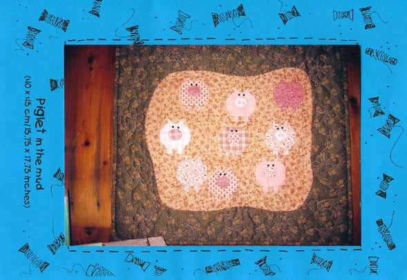 Acht schattige biggetjes in een modderpoel. De afmeting van de quilt is 40 x 45 cm.