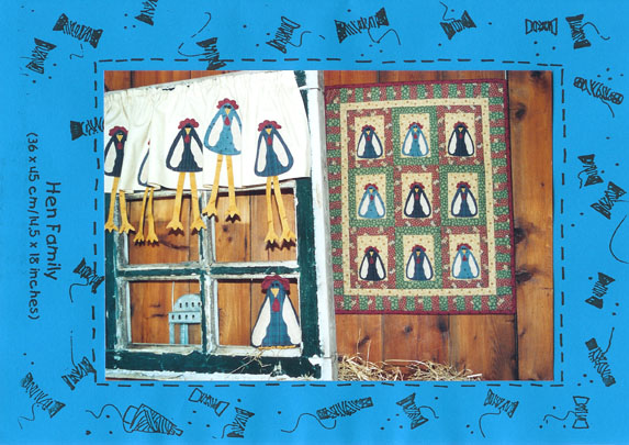 Een nieuw minipatroon van Bobbin, met drie onderdelen! Een miniquilt van 36 x 45 cm, een gordijn met kippen en een losse kip.